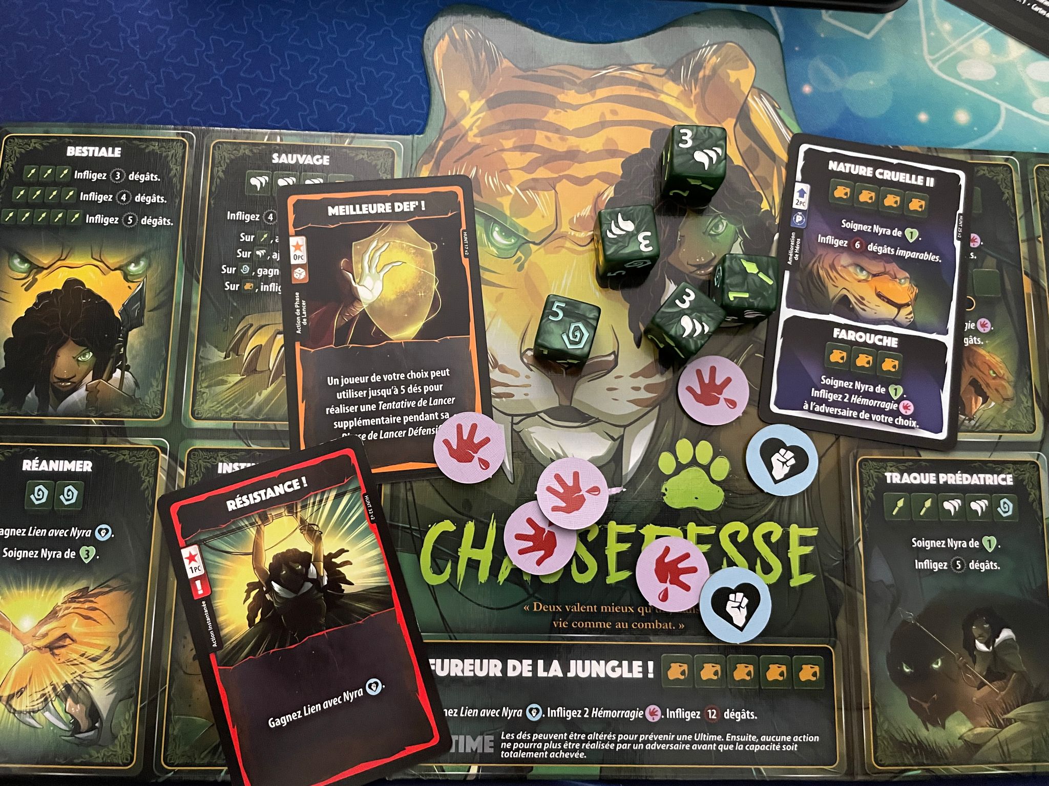 J’adore les sensations qu’offrent le jeu, un peu comme le yams on fait tout ce qu’on peut pour faire les meilleures combinaison possible afin de terrasser son adversaire ! J’aime vraiment beaucoup ce jeu.