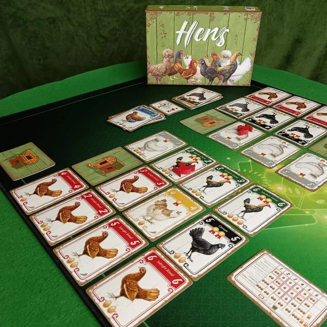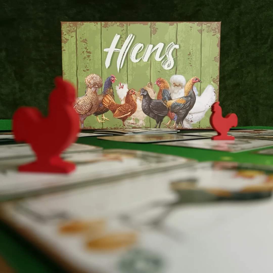 Dans le jeu Hens, vous incarnez un éleveur de poules et tentez de créer une basse-cour harmonieuse composée de diverses espèces de poules. À chaque tour, vous piochez deux cartes, soit dans la pioche, soit dans la défausse de vos adversaires. Ensuite, vous placez une poule dans votre basse-cour et défaussez une carte dans votre défausse personnelle.