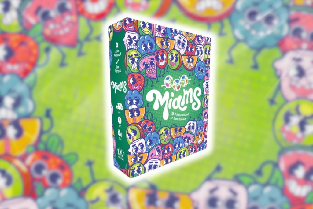 Miams est effectivement un petit jeu de dés mais de dés fruités (et non chiffrés) ! Il reprend partiellement les règles du Yam’s en le rendant toutefois un peu plus gourmand d’où le nom ! Là où ils font fort c’est que les petits ajouts viennent simplement bonifier l’expérience mais pas l’alourdir. Ca veut dire quoi ? Qu’on va pouvoir continuer à jouer avec mémère, le gamin et peut-être même le clébard ! (Bon ok peut-être pas le gamin parce qu’on est quand même plus tranquilles quand il regarde sa tablette !).