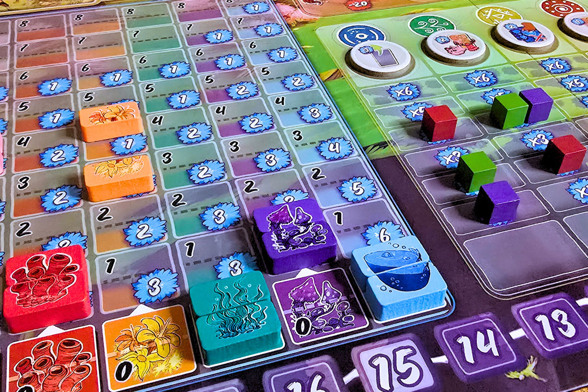 Il ne reste désormais plus qu’à renouveler la réserve de biomes en remontant toutes les parties inférieures de biomes jusqu’à leur partie supérieure (qui correspondent aux biomes récupérés durant ce tour mais inutilisés). Pour chaque cran remonté, des points sont immédiatement collectés. Vous serez donc récompensés si vous produisez des ressources sans les utiliser immédiatement! Mais gare à ne pas les laisser traîner trop longtemps ou vous risqueriez de vous les faire voler par un autre joueur.